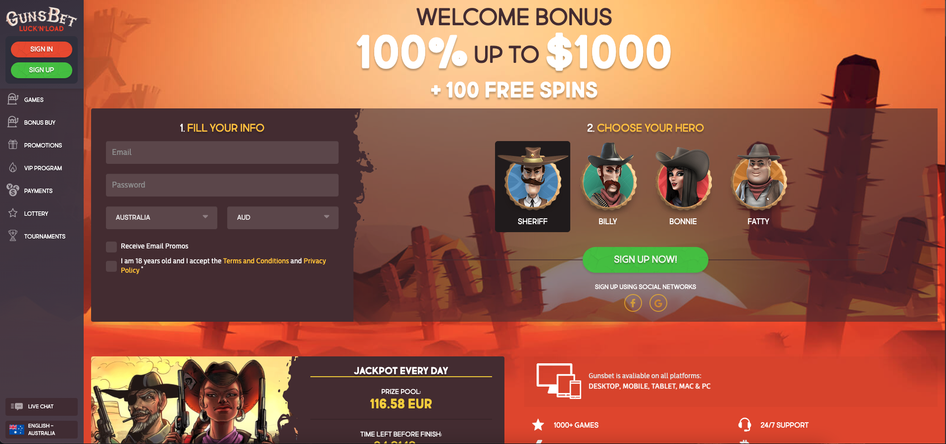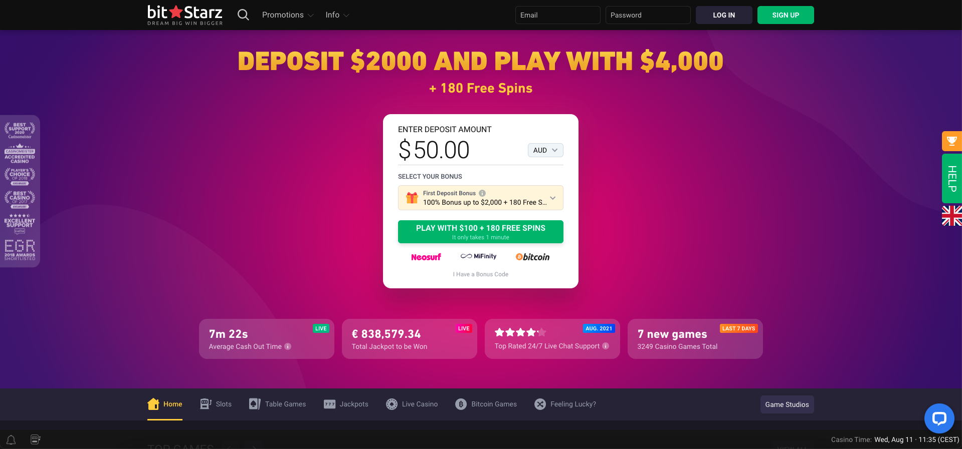 One of the top 10 listed casinos across various reputable websites, GunsBet accepts Bitcoin and classic FIAT payments. If you fancy sports betting and BTC original games, then this might be the best site for you. Keep in mind that you could receive A$625 weekly in the form of BTC bonuses.