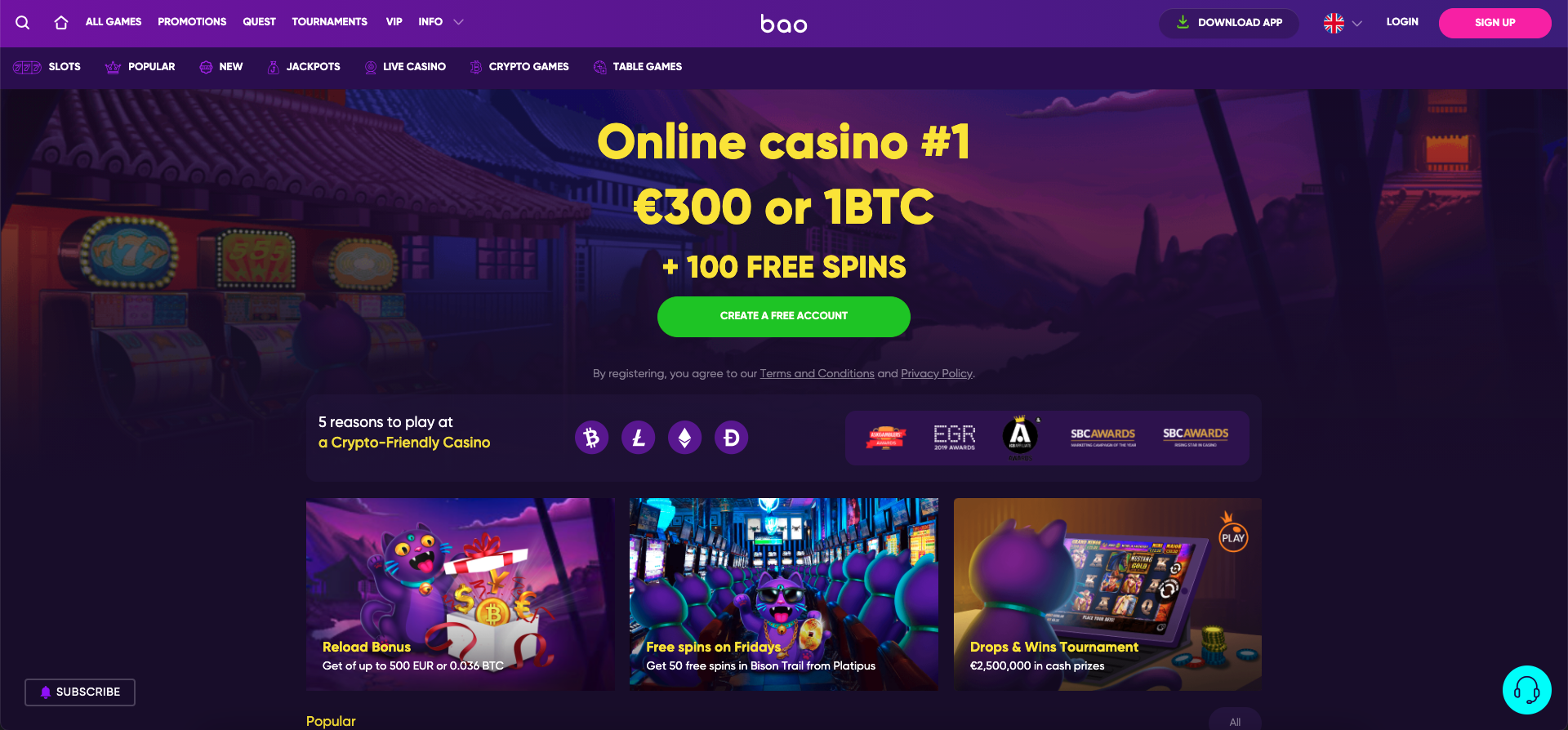 Another great mobile casino with instant Bitcoin payment processing – Bao Casino offers a 250% match and 100 free spins on your first three deposits on the platform. Licensed through Curacao, Bao Casino is one of the safer Bitcoin casinos in Australia.