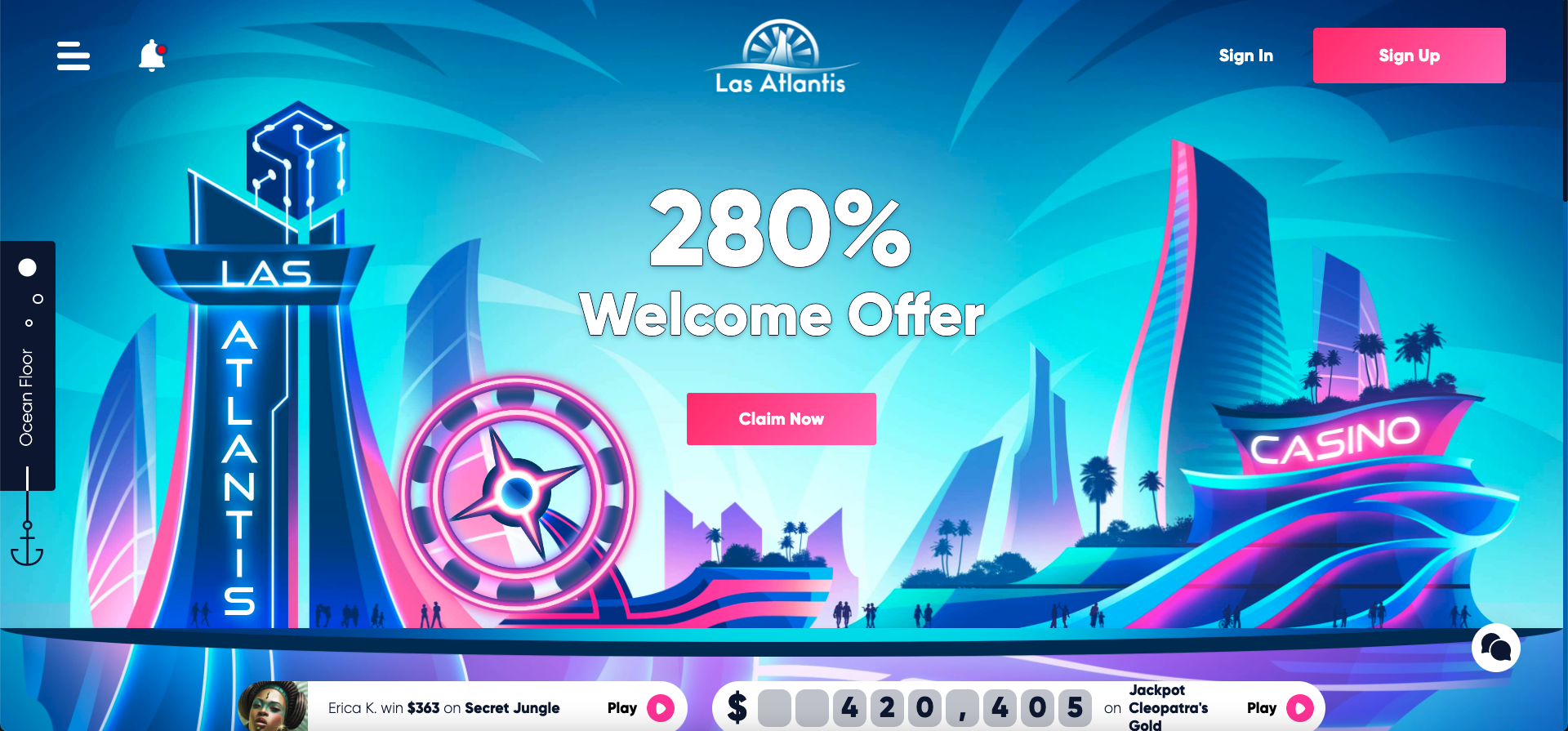 One of the safest and most beautifully designed RTG casinos in Australia, Las Atlantis accepts Bitcoin deposits and welcomes new players with a free sign up bonus. First depositors can receive up to A$14,000 in bonus cash, thanks to the 250 – 400% slots bonus!