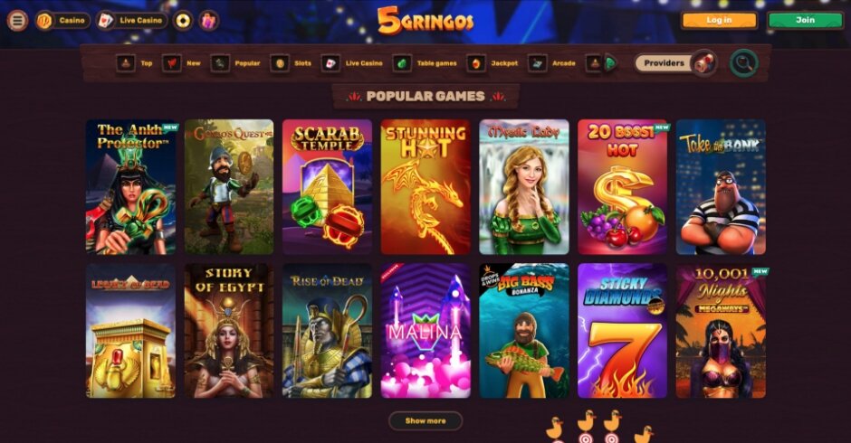5Gringos is a paradise for anyone interested in online pokies. There are 5,000+ pokies for real money, accessible through the following categories: