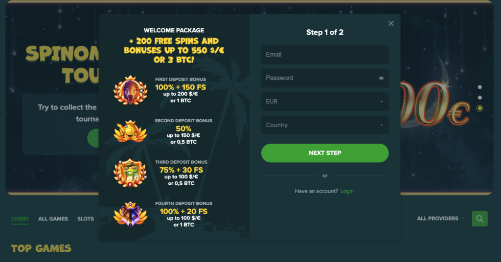 ✅ Welcome Casino Package | 1st Deposit – 100% match bonus up to $200 or 1 BTC and 150 free spins 2nd Deposit – 50% up to $150 or 0.5 BTC 3rd Deposit – 75 up to $100 or 0.5 BTC and 30 free spins 4th Deposit – 100% up to $100 or 1 BTC and 20 free spins Get bonus |