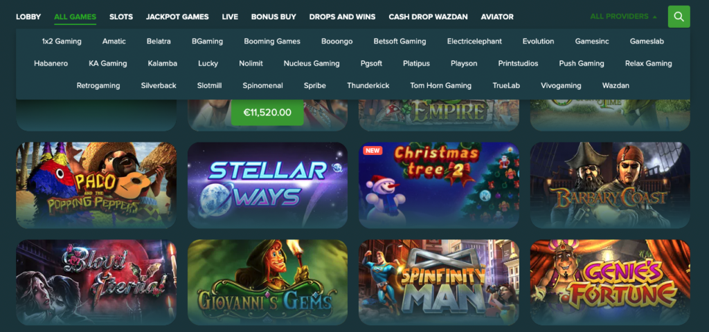 Software Providers | Microgaming, Betsoft, BGaming, NetEnt, Pragmatic Play, Belatra, Booming Games, Booongo, EGT, EvoPlay, iSoftBet, NoLimit City, Platipus, Play’n Go, Playson, Relax Gaming, Spinometal, Thunderkick, Tom Horn, True Lab, Vivo Gaming, Wazdan, Yggdrasil, Quickspin, Habanero, PGSoft, iGTech, Kalamba |