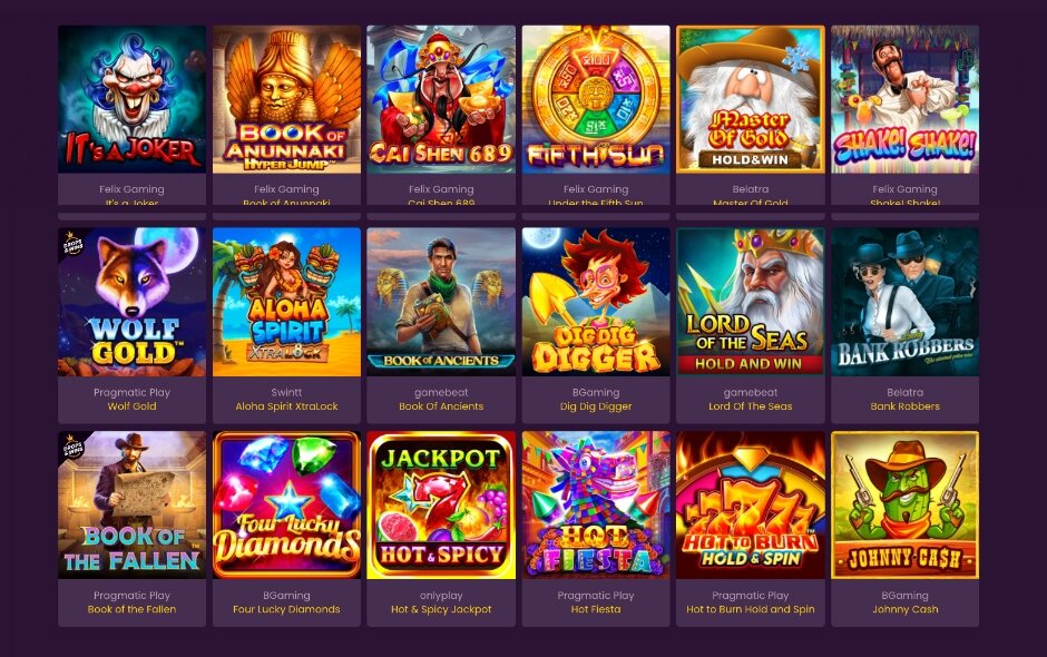 Software Providers | 1Spin4Win, 4thePlayer, Avatarux, Baddingo, Bangbanggames, Bbgames, Belatra, Bet2Tech, BGaming, Boomerang Studios, Booming Games, Booongo, BetSoft Gaming, Bulletproof, Evoplay Entertainment, Felix Gaming, Fugaso, Gamebeat, Gamevy, Gamzix, Goldenrace, Hotrisegames, Igrosoft, IGtech, Isb, Jaderabbit, Kiron, Leander, Lucky, Mancala Gaming, Mascot, MrSlotty, Netgame, Northernlights, Nucleus Gaming, Onlyplay, Petersons, Platipus, Playson, Rabcat, Reellifegames, Reflexgaming, Smartsoft, Spribe, Swintt, Technology, Tom Horn Gaming, TrueLab, Wazdan, Yggdrasil, Zillion |
