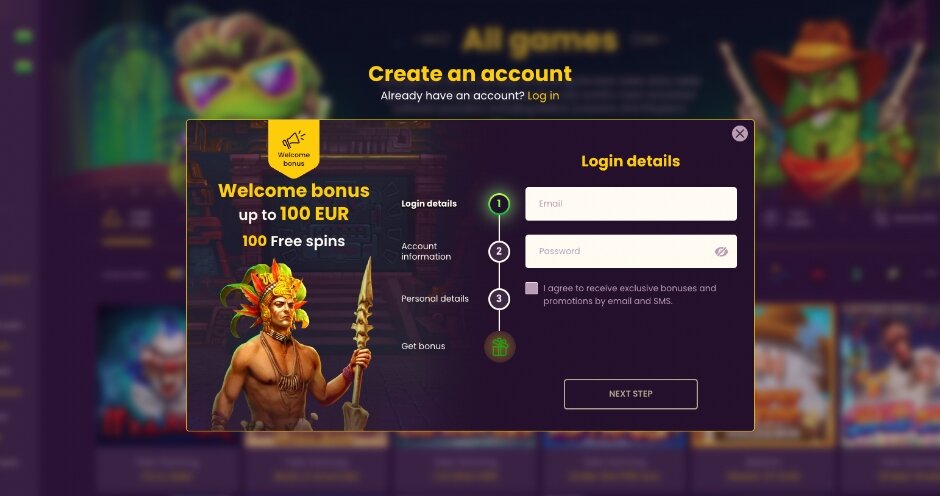 Ready to give some Betsoft or iSoftBet slots a go? To do so, you must first log in to Bizzo Casino. The registration process is the only prerequisite, and it is a small feet to take: