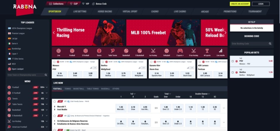 If you think Rabona Casino is the best part here, you would be wrong. The sports betting site is equally equipped with an extensive range of markets: