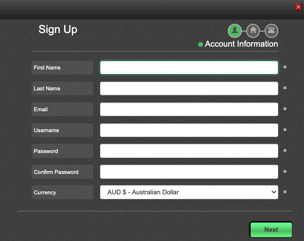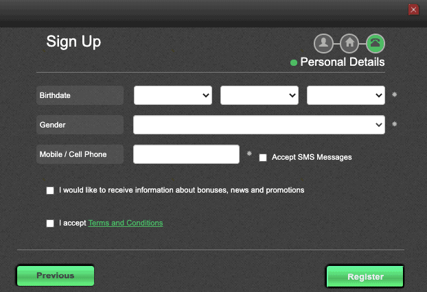The above goodies, especially the no deposit bonus codes, are accessible instantly after registration. The whole process is three steps long, comprising of: