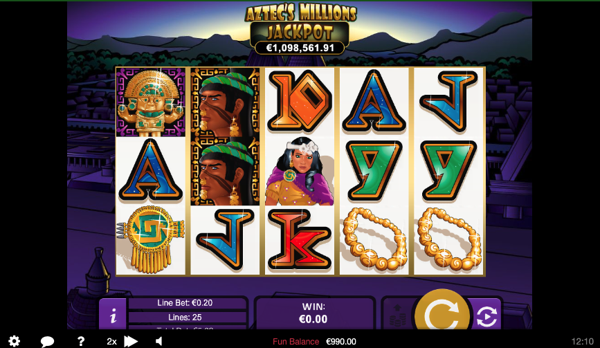 To win the Aztec Millions progressive prize, you must land 5 Logo symbols on one of the 25 paylines. On average, the jackpot is won every 5 years, with the biggest win to date being $4 million. To date, we have only recorded 2 jackpot wins since the game’s release.