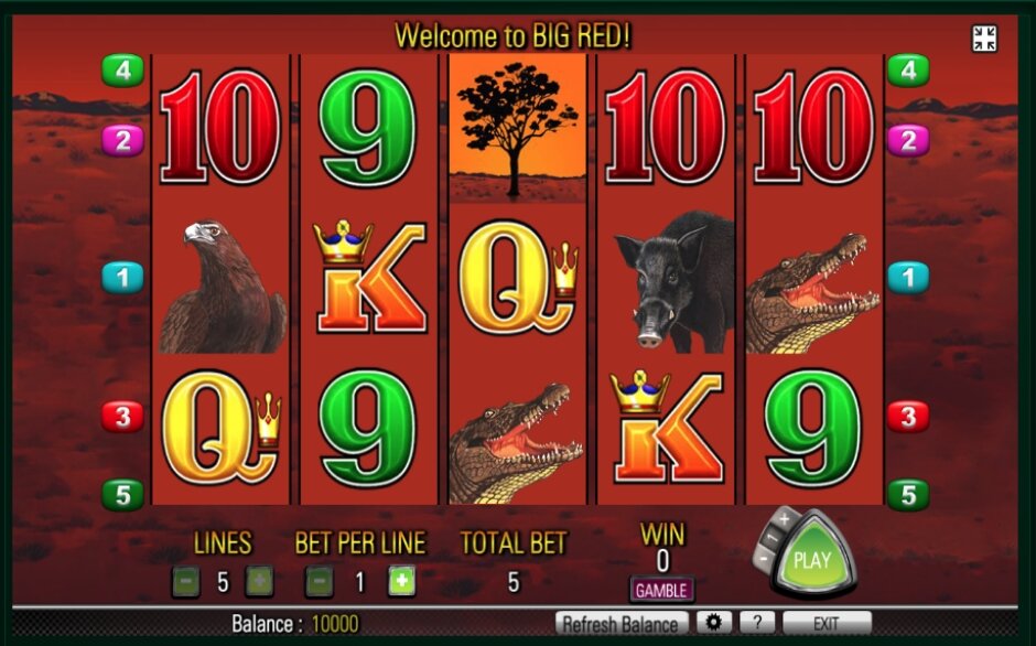 - Gamble – in Big Red slot is pretty simplistic, as the game itself. Players can only choose the card colour to double or even quadruple their winnings.