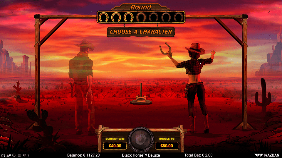 Black Horse Deluxe Slot game is surely full of surprises and great features! For example, there is a unique gamble feature, which is a horseshoe throwing contest and is a key to double wins! There are also Wild and Scatter symbols – it increases the winning possibilities a lot! And the buy feature is represented here as well, which lets players choose a specific bonus directly.