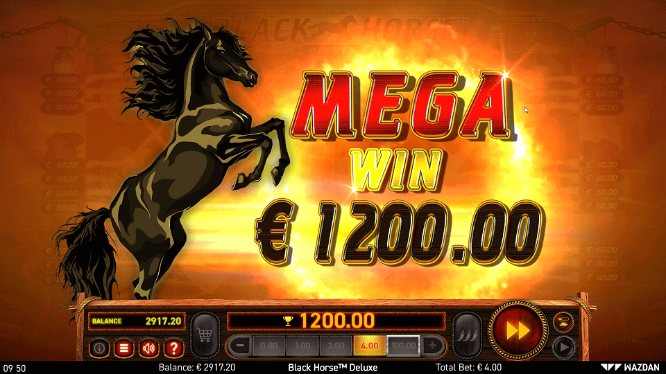 The biggest win in Black Horse Deluxe can be 950x bet on a payout.